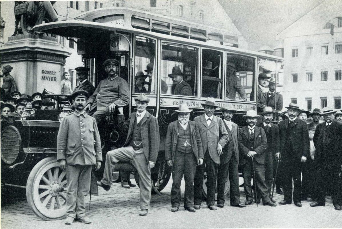…und Busverbindungen. Hier die Buslinie Böckingen-Heilbronn beim Halt am Marktplatz 1905