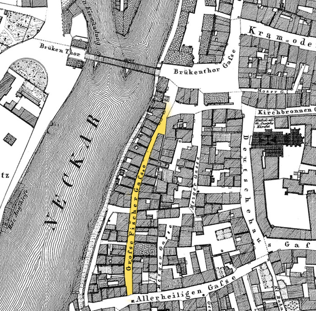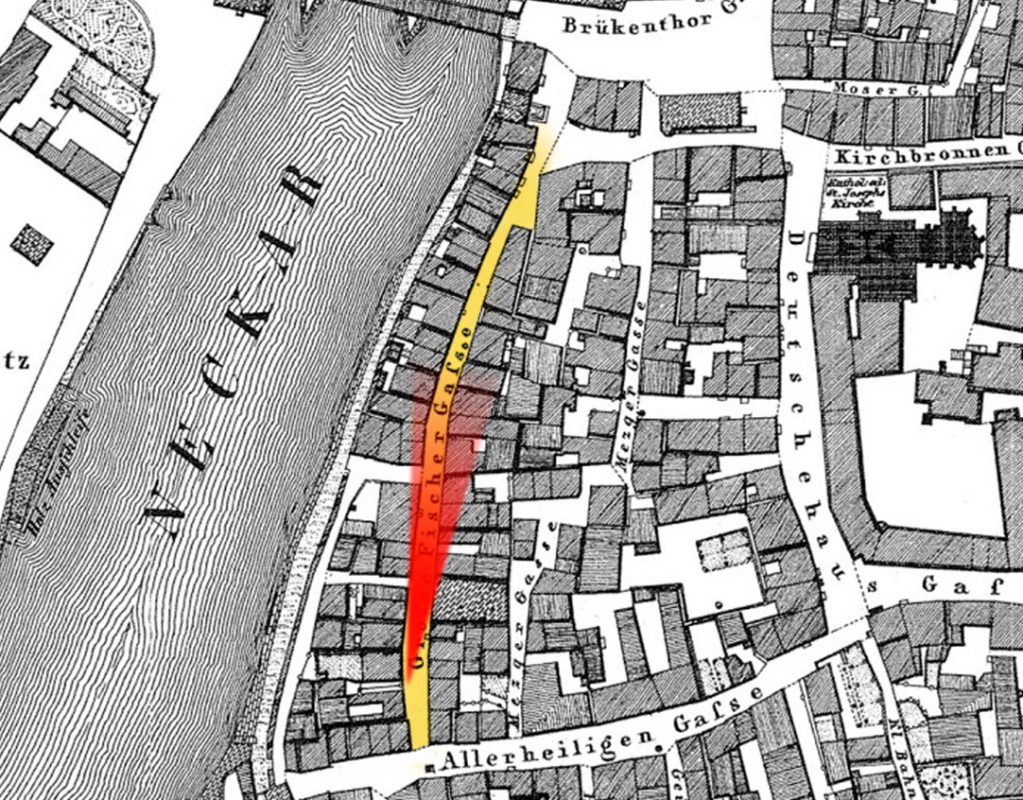 Die alte Fischergasse lag viel näher am Neckar als die heutige.