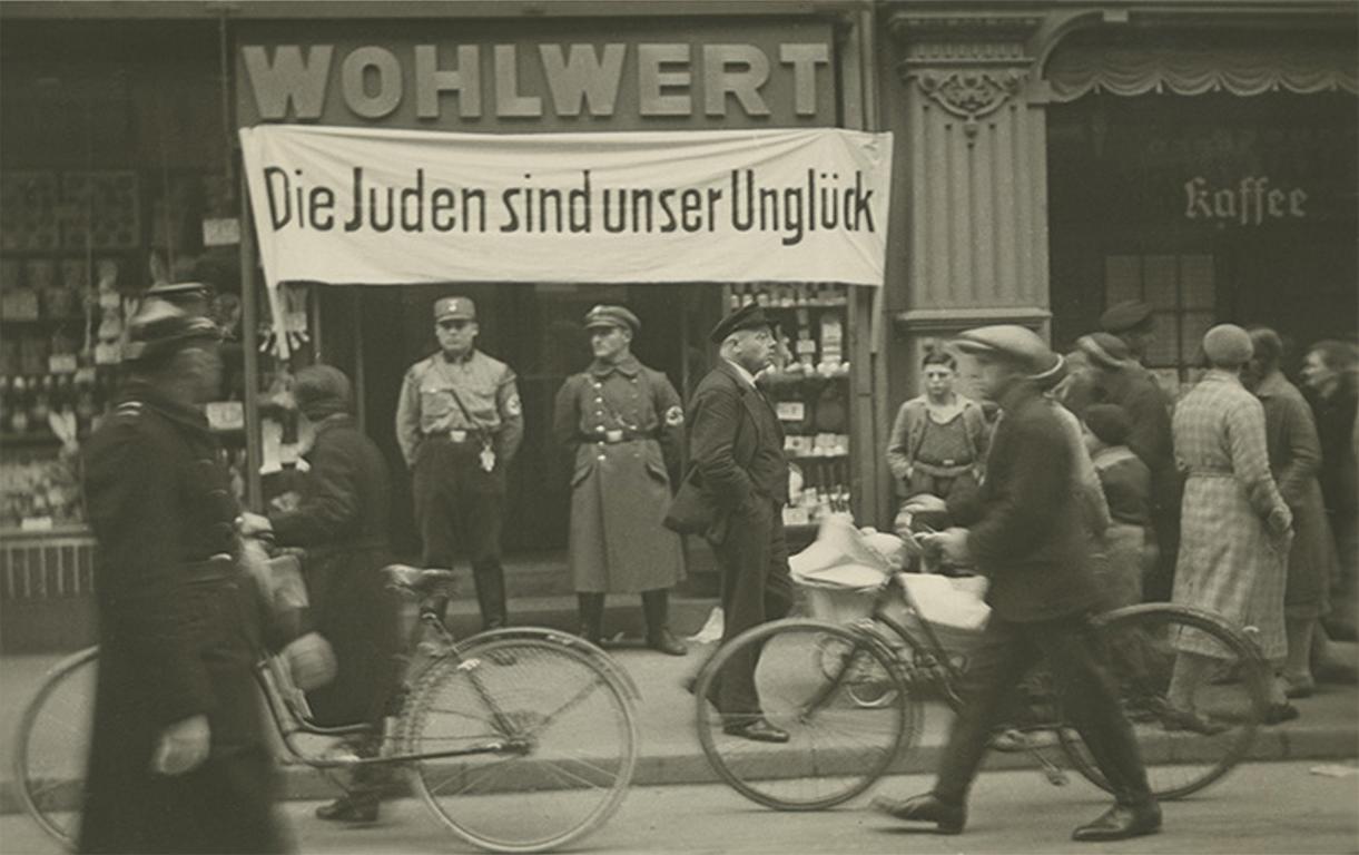 Geschäft Wohlwert in der Sülmerstrasse, Heilbronn am 1.4.1933 (a). Fünf Tage später wurde ein Brandsatz in das Geschäft geworfen, Mitarbeiter verletzt und das Geschäft verwüstet.