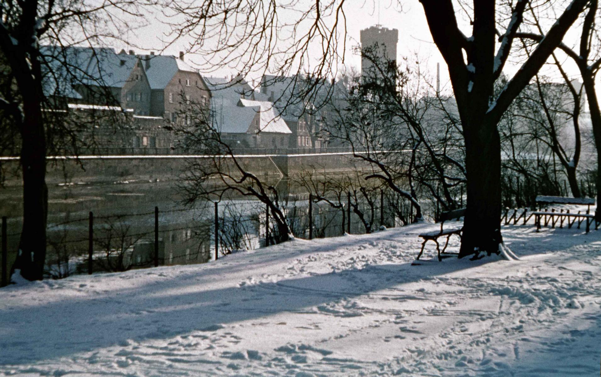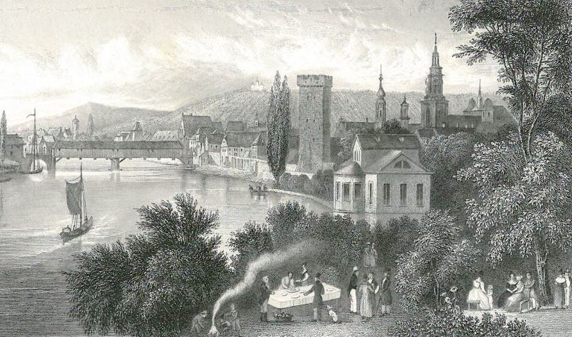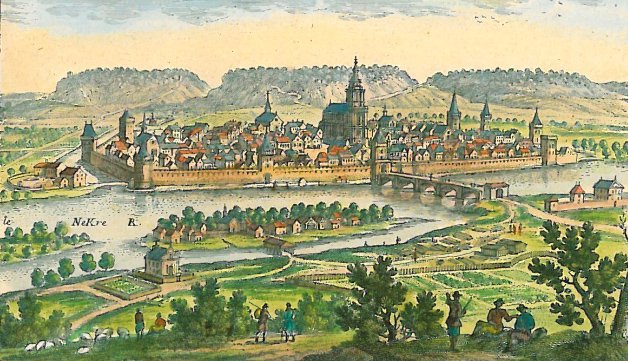 Der Neckar vor der Stadt war früher breiter, stärker befahren, mit regem Betrieb zu den städtischen Hafenanlagen. Die Kettenschiffe gab es bis 1935.
