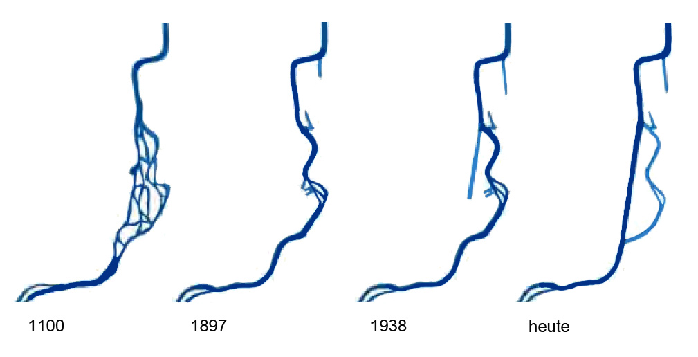 Neckarverlauf bei Heilbronn von 1100 bis heute