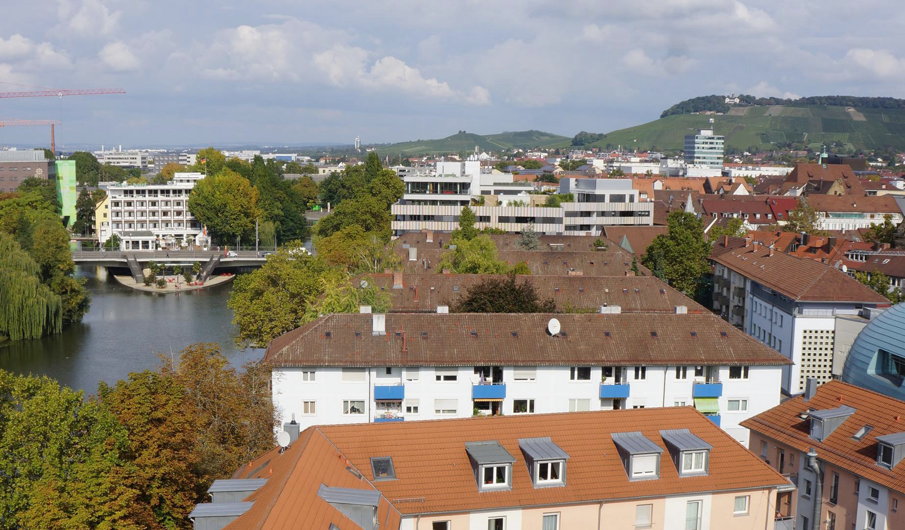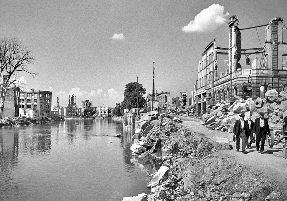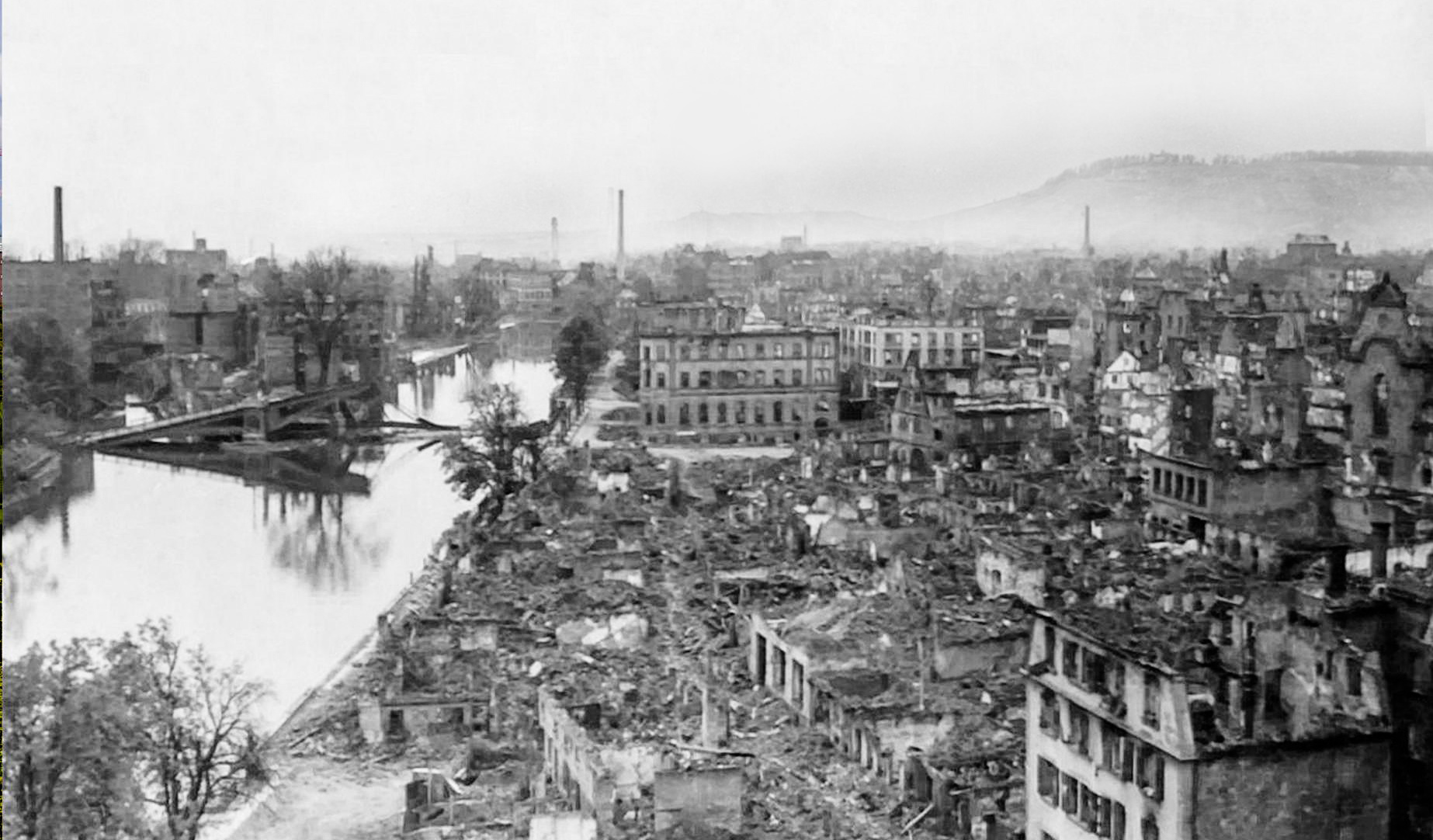 Oben: Blick vom Götzenturm auf die neue Brücke zur Kaiserstraße, Heilbronn (US Army, gm, dig jp, 2).