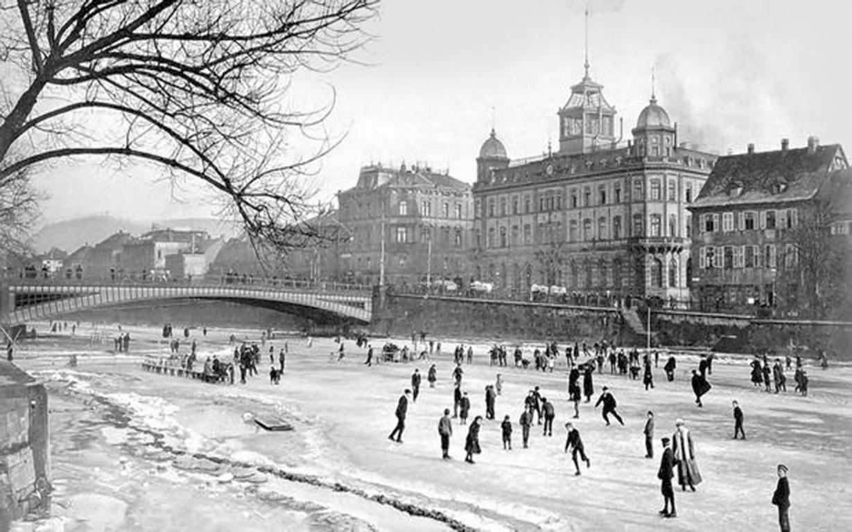 Unten: Schlittschulaufen auf dem Neckar um die Jahrhundertwende